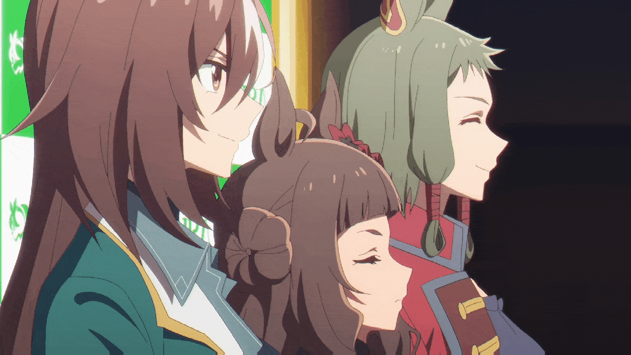75. 実際に何度もありますが、最新のものはおそらく新しい漫画『ウマ娘: プリティーダービー – スターブロッサム』からで、主人公のサクラローズが父親を恋しがっていると述べている場面で、彼女が子供の頃の父親と一緒にいる短いコマが描かれています。父親は普通の人間の男性のように見えます(つまり、馬の耳はありません 笑)。